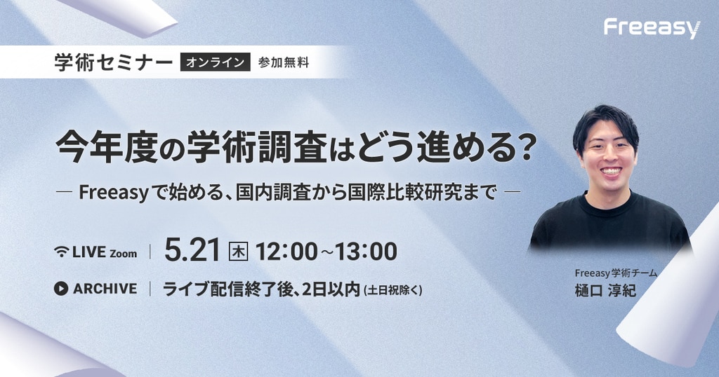 | セミナー名 | 【Freeasy学術セミナー】今年度の学術調査はどう進める? ― Freeasyで始める、国内調査から国際比較研究まで ― |