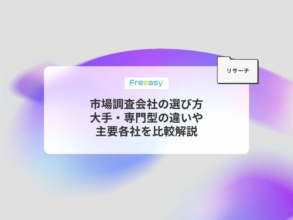 記事を見る市場調査会社の選び方を徹底解説!大手・専門・低コスト型の違いや費用相場、主要各社の特徴を比較紹介します。失敗しないための依頼手順や提案依頼書テンプレートも掲載しているので、自社に最適なパートナー探しにぜひ役立ててください。
